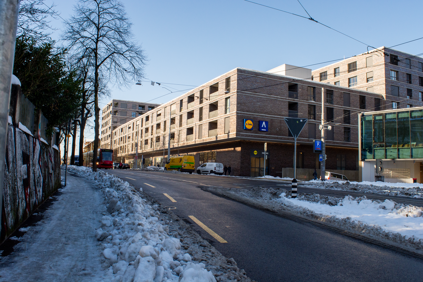 Das Erdgeschoss bietet auf rund 2'500 m² Gewerbeflächen, die die Nahversorgungsbedürfnisse des umliegenden Quartiers decken.