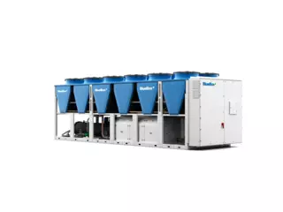 Ilmalauhdutteinen vedenjäähdytin, ruuvikompressori muuttuvalla puristussuhteella ja invertteriohjatulla tehonsäädöllä, R513A, R134a, 260–1360 kW