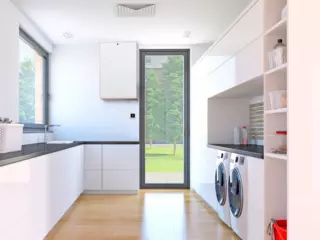 The ventilation unit is controlled from the control panel and via a mobile app (iOS/Android) and can be connected to building automation systems using Modbus.