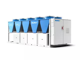 Modular free-cooling chillers for large systems. Wide range: high efficiency multiple combinations and low noise versions. Selectable independent free-cooling module.