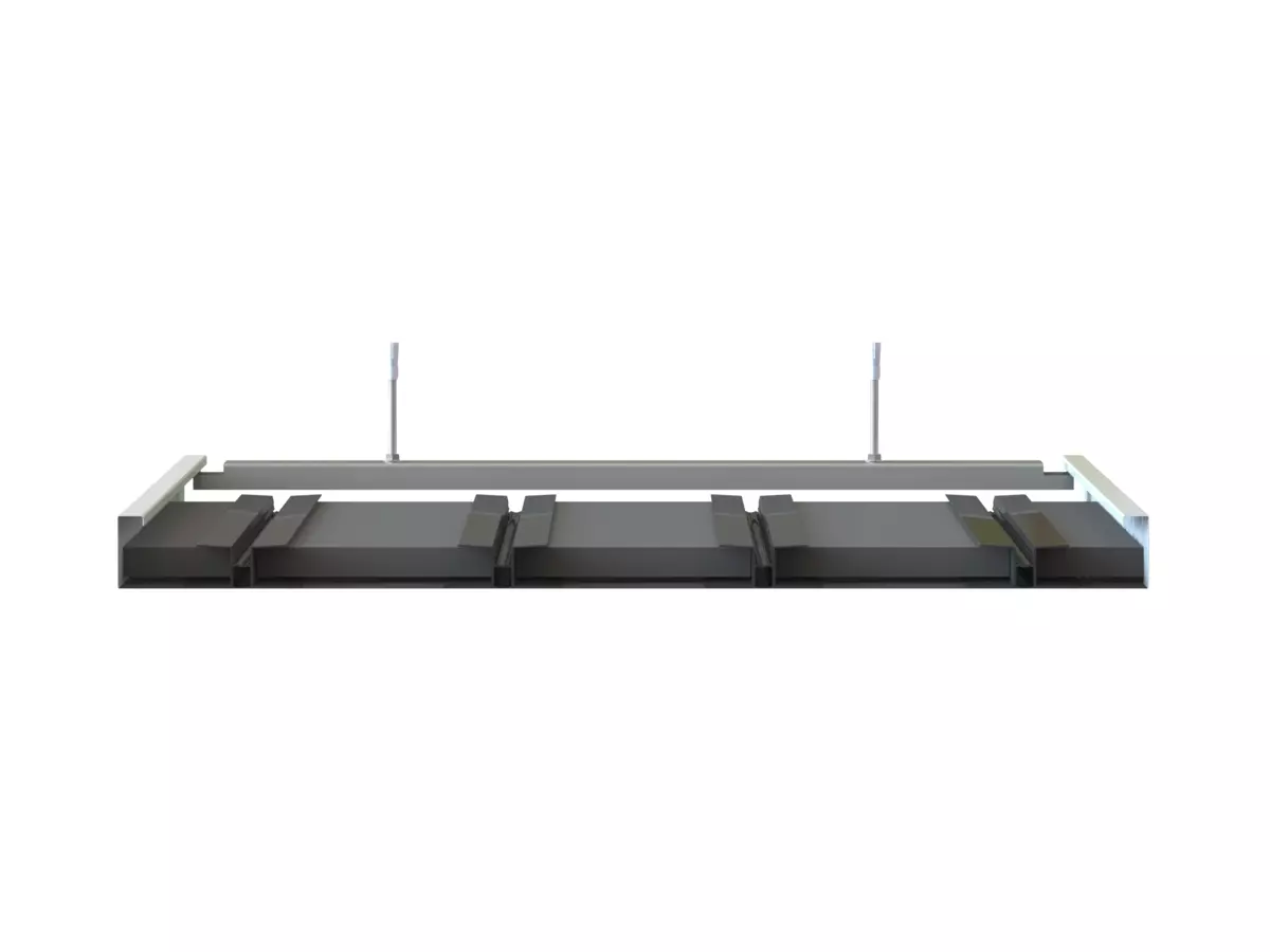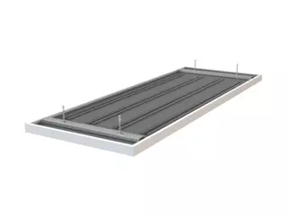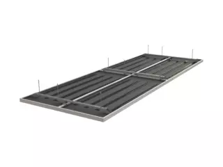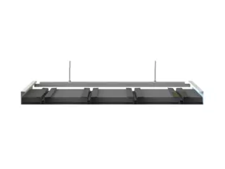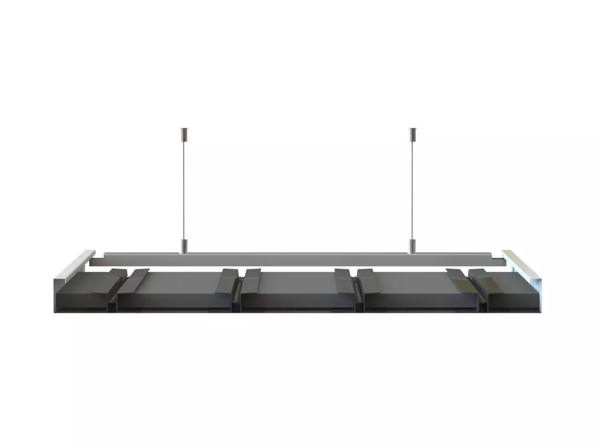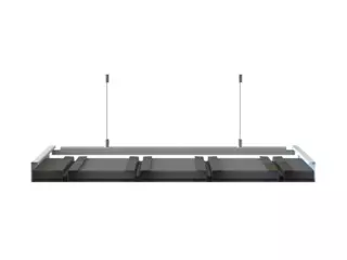 AKUSTIKTHERM is an acoustically effective and thermally conductive ceiling sail system for use in properties with thermally active building systems (TABS). The acoustic sail transfers energy from the concrete surface into the room via heat radiation using an exchange system with a special coating, while at the same time providing expansive sound absorption surfaces.