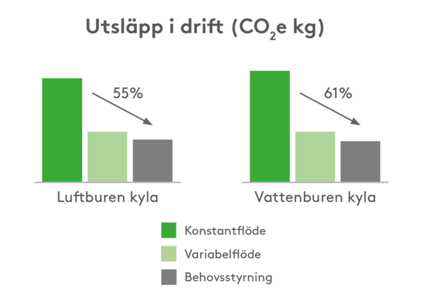 Mindre energianvändning betyder också lägre klimatavtryck. Med en behovsstyrd lösning kan CO₂-utsläppen minska med upp till 61 %, vilket gör det till ett effektivt sätt att bidra till en mer hållbar framtid.