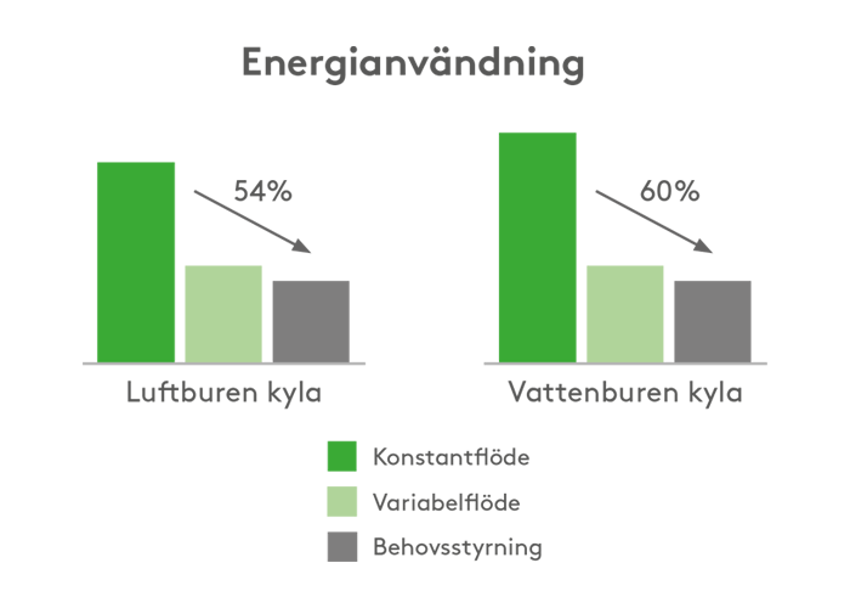 För att klara klimatmål och framtida krav på byggnader behövs det göras energieffektiva systemval. Redan idag är det svårt att klara BBRs krav utan någon typ av behovsstyrning.
